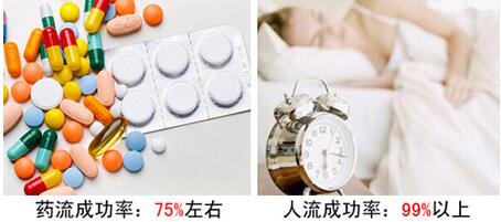 成功率:据统计,药流的成功率仅仅接近75*;人工流产的成功率在99*以上。 人工流产手术准确且无需刮宫,而药流易出现流不净。