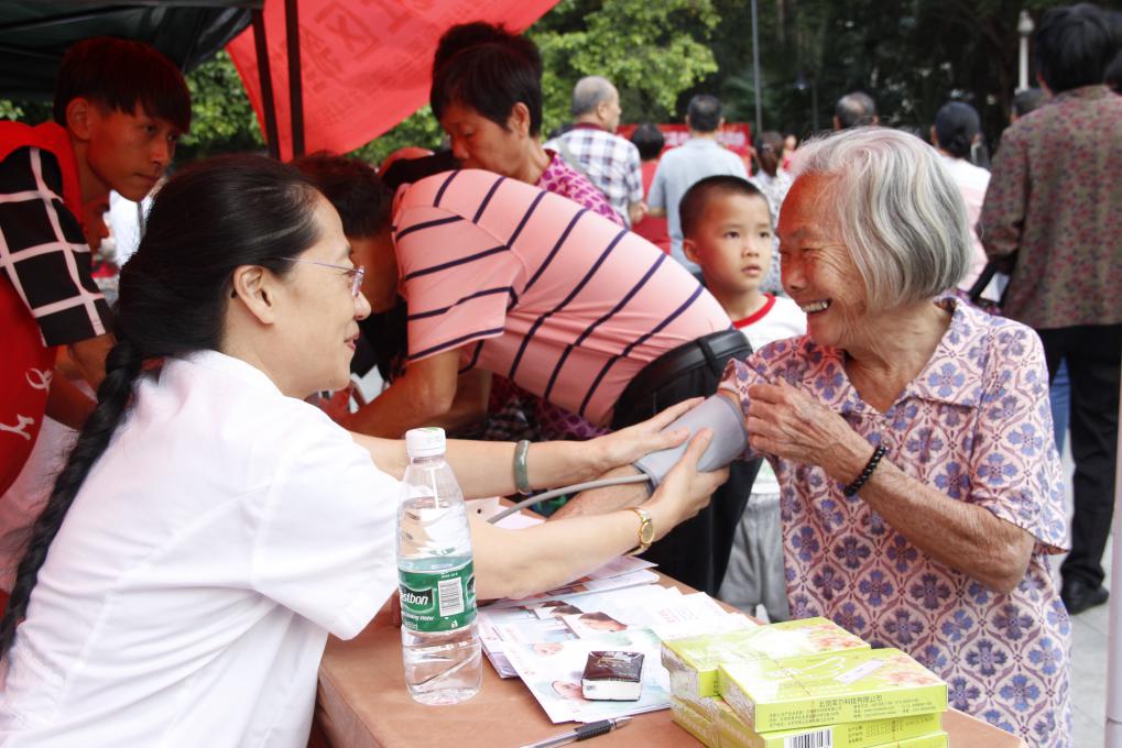 ▲我院医护人员细心为居民提供义诊服务