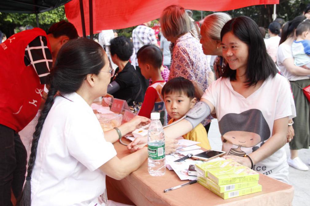 现场活动热烈进行之余,我院医护团队在院党支部书记刘颖的带领下,亲切为前来咨询人员进行义诊服务。我院医护人员细心的关怀,耐心的解疑答惑,获得众多社区百姓们的赞许。