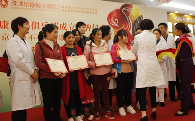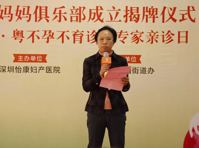 2017年12月24日,怡康妈妈俱乐部成立揭牌仪式暨京·粤不孕不育诊疗专家亲诊日活动在深圳怡康妇产医院一楼举行。罗湖区桂园街道办大塘龙社区妇联主席潘柳,深圳怡康妇产医院院长刘颖、杨文军、张军等领导专家出席了揭牌仪式。