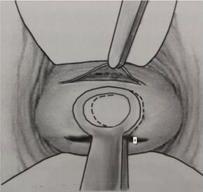 患者在麻醉状态下,手术医生用阴道拉钩暴露宫颈,横行切开宫颈前唇的阴道粘膜,上推膀胱,切开宫颈后唇粘膜,用卵圆钳将宫颈前后唇拉近,从切开的粘膜下由前向后进针,再由后向前进针,从切开的粘膜下出针打结,连续缝合粘膜并包埋线结。